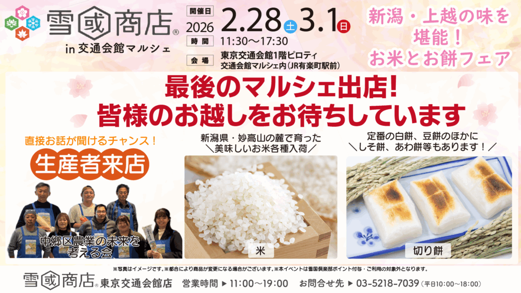 今回は、「新潟・上越の味を堪能!お米とお餅フェア」 がテーマで、2月28日(土)・3月1日(日)開催!